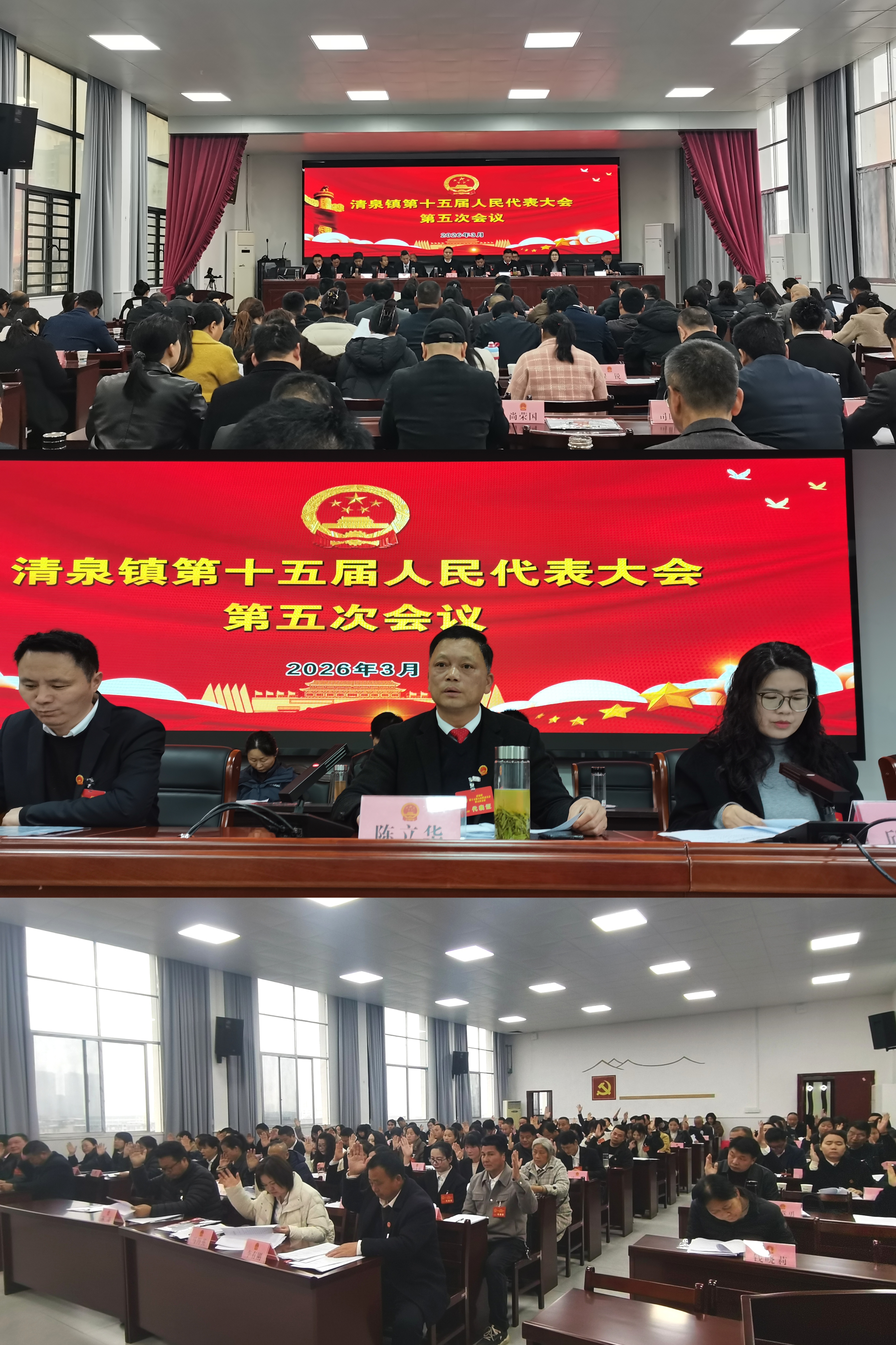 2026年3月18日,清泉镇第十五届人民代表大会第五次会议胜利召开。大会应到代表147名,因事因病请假36名,实到代表111名,符合法定人数。